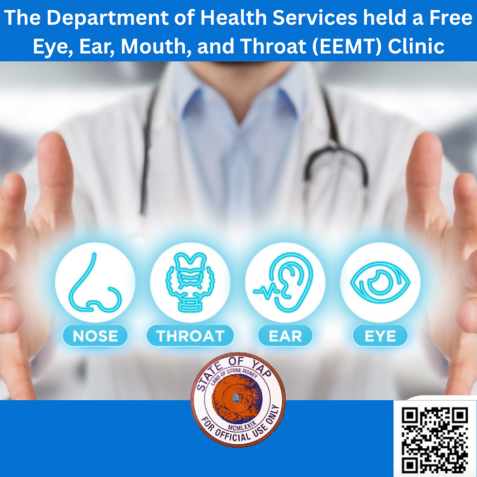 Yap FM - Yesterday, April 6th, the Department of Health Services held a 3-day Clinic Free Ear, Mouth, and Throat (EMT) Clinic. The EMT Clinic is scheduled for April 6th for patients who made an appointment in advance, and from April 7th to April 8th, it is open to any walk-in individuals who are interested in checking up with the EMT Clinic